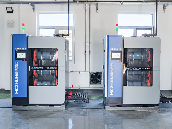 采用無隔膜電解法電解稀鹽水,在線制備低濃度次氯酸鈉溶液的裝置。具有原料易得、產(chǎn)物純凈、安全可靠的特點。適用于各類氯化消毒水處理。